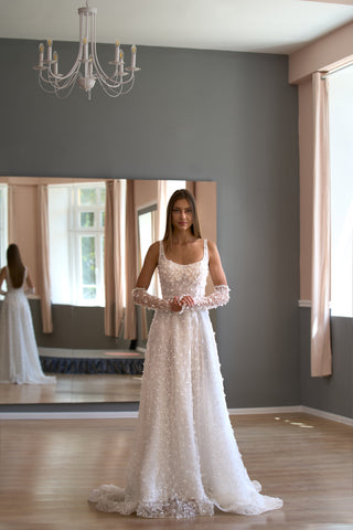 Ich kann Mariya wirklich nur wärmstens empfehlen – sowohl als Verkäuferin als auch als Designerin. Wenn Sie über ein Brautkleid nachdenken, kann ich Ihnen nur wärmstens empfehlen, es zu kaufen, vor allem mit Mariya und ihrem unglaublichen Team, das Sie unterstützt! Sie hat während des gesamten Prozesses mit mir kommuniziert, sich meine Visionen genau angehört und mein Traumkleid zum Leben erweckt. Die Qualität ist hervorragend, die Verarbeitung außergewöhnlich und der Kundenservice erstklassig. Ich bin unendlich dankbar – vielen Dank, Mariya und Team!
