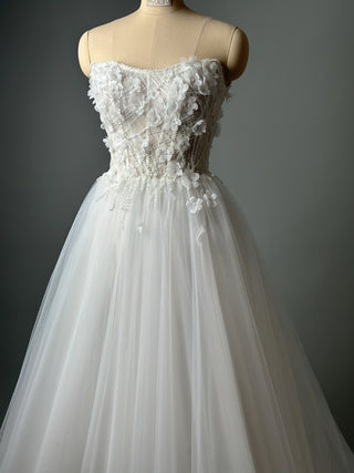 Das schulterfreie Dioma-Kleid schmeichelt jeder Figur und besticht durch einen Ausschnitt, der zugleich anmutig und verführerisch wirkt. Wir vereinen schönes Design mit perfekter Passform – damit Sie sich vom ersten Schritt zum Altar bis zum letzten Tanz so wohl fühlen, wie Sie aussehen.