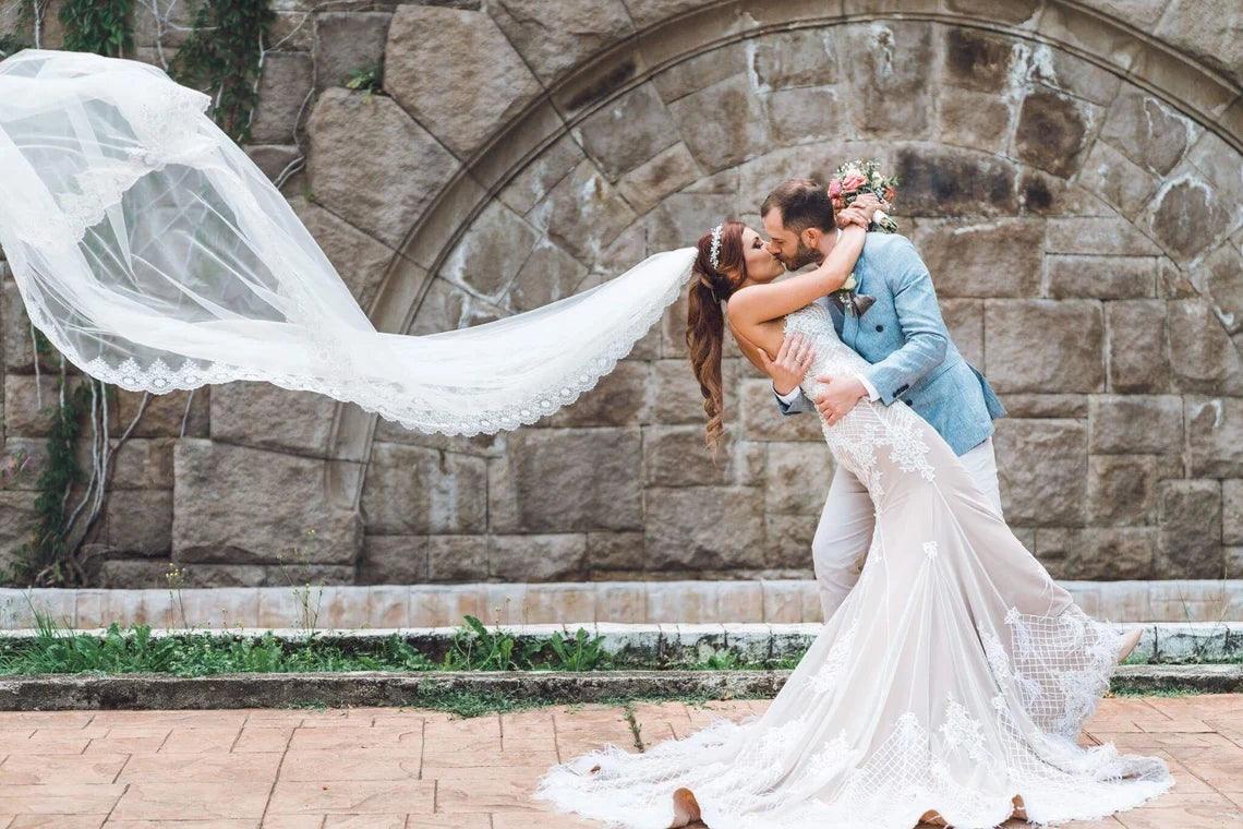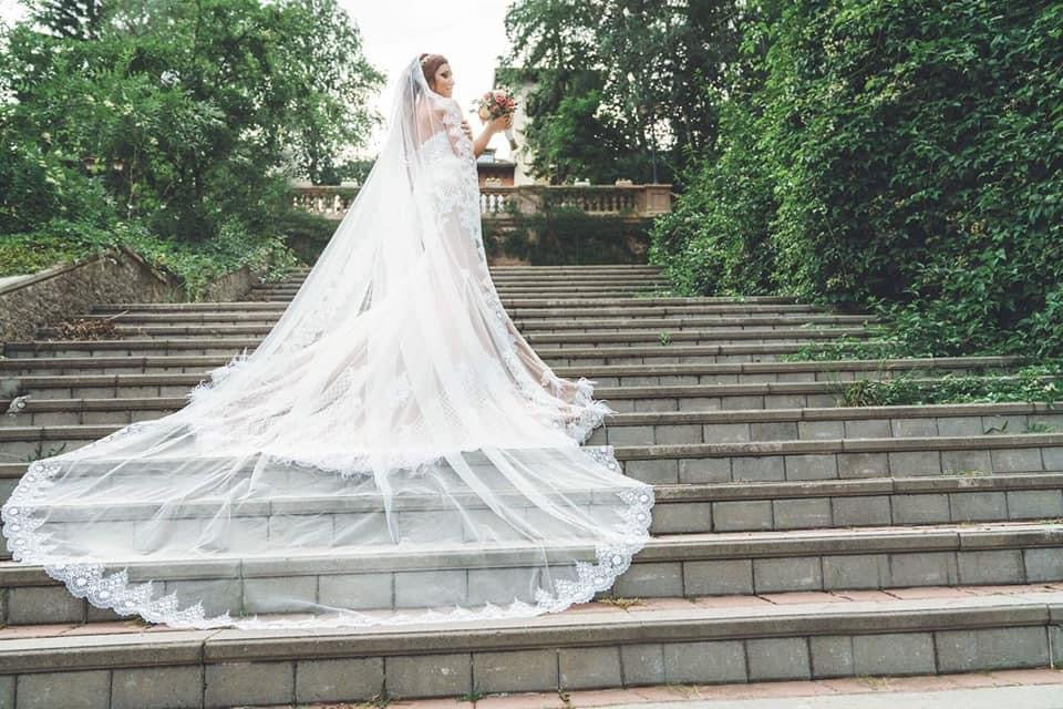 Der kathedralenlange Schleier setzt mit seiner schwungvollen Silhouette und der exquisiten Spitzenkante ein atemberaubendes Statement. Perfekt für große Auftritte und zeitlose Zeremonien, verleiht die zarte Spitze jedem Brautlook einen Hauch von Romantik und Eleganz. Ein sicherer Kamm erleichtert das Anbringen. Die Spitzenkante kann individuell an Ihr Kleid angepasst werden.