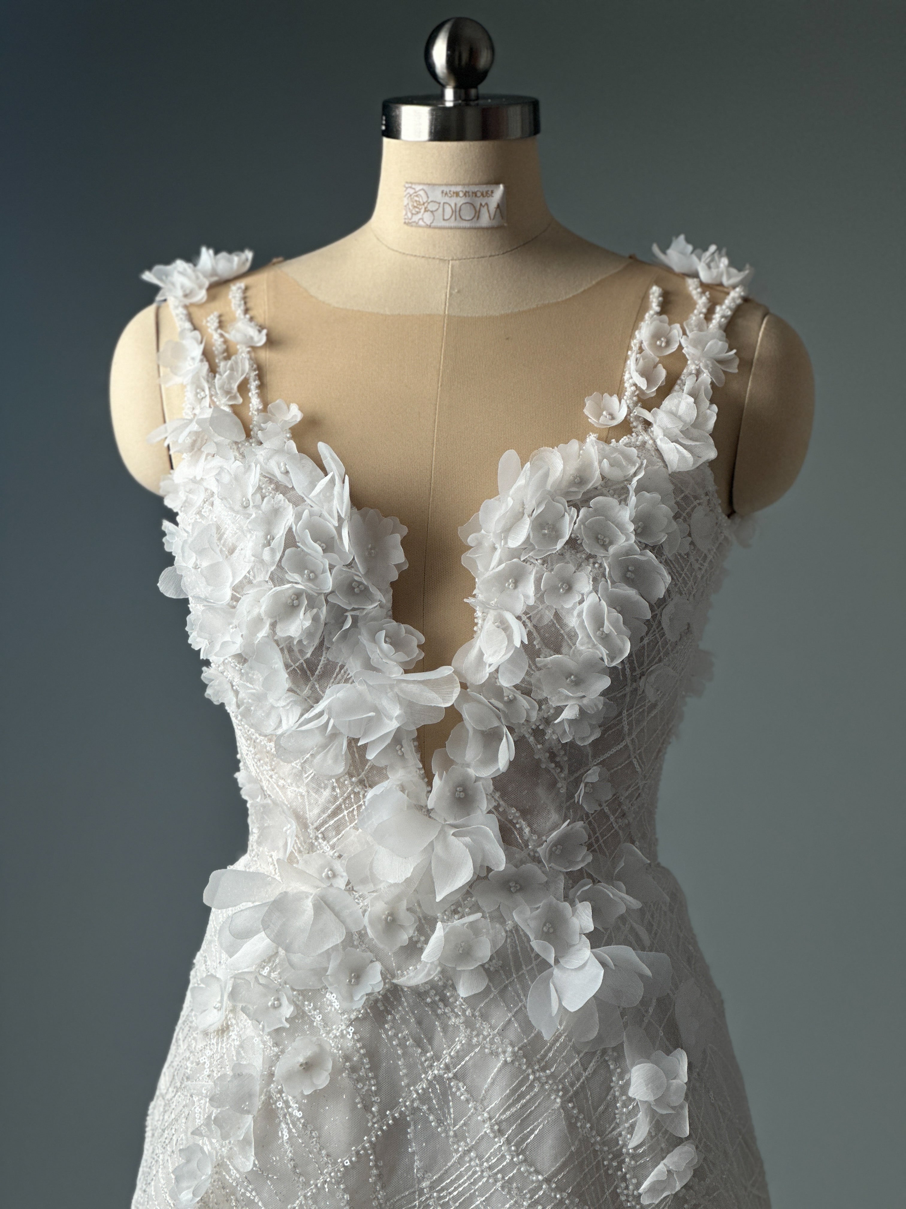 Dieses vielseitige Kleid wird mit Sorgfalt von Hand gefertigt und auf Ihren besonderen Moment zugeschnitten – egal, ob es Ihr einziges Kleid oder Ihr atemberaubender zweiter Look ist.