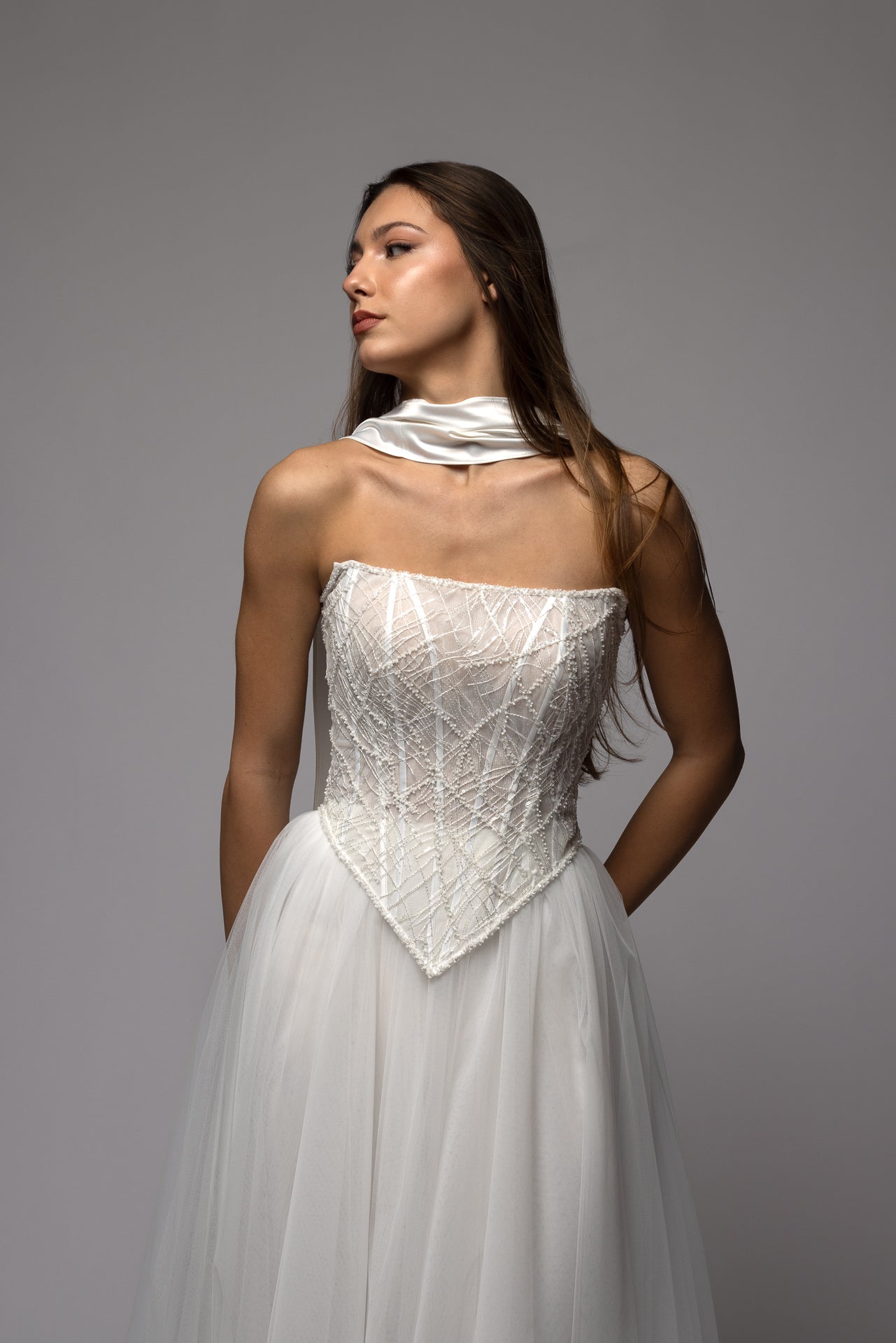 Every gown we create is made-to-measure for you. Each piece of fabric is cut and sewn according to your personal measurements.
