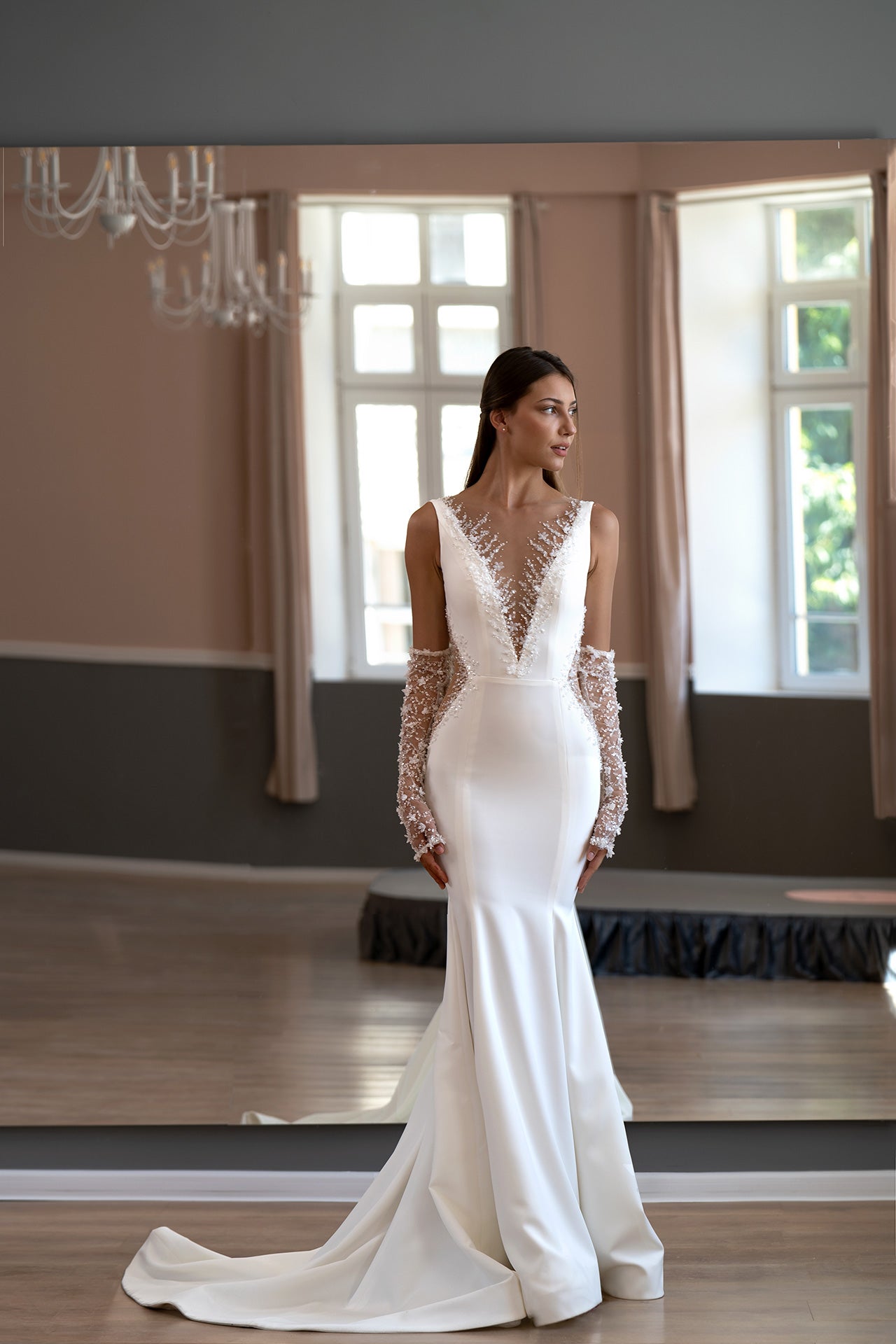 Elegant Mermaid Crepe wedding dress Grace with gloves