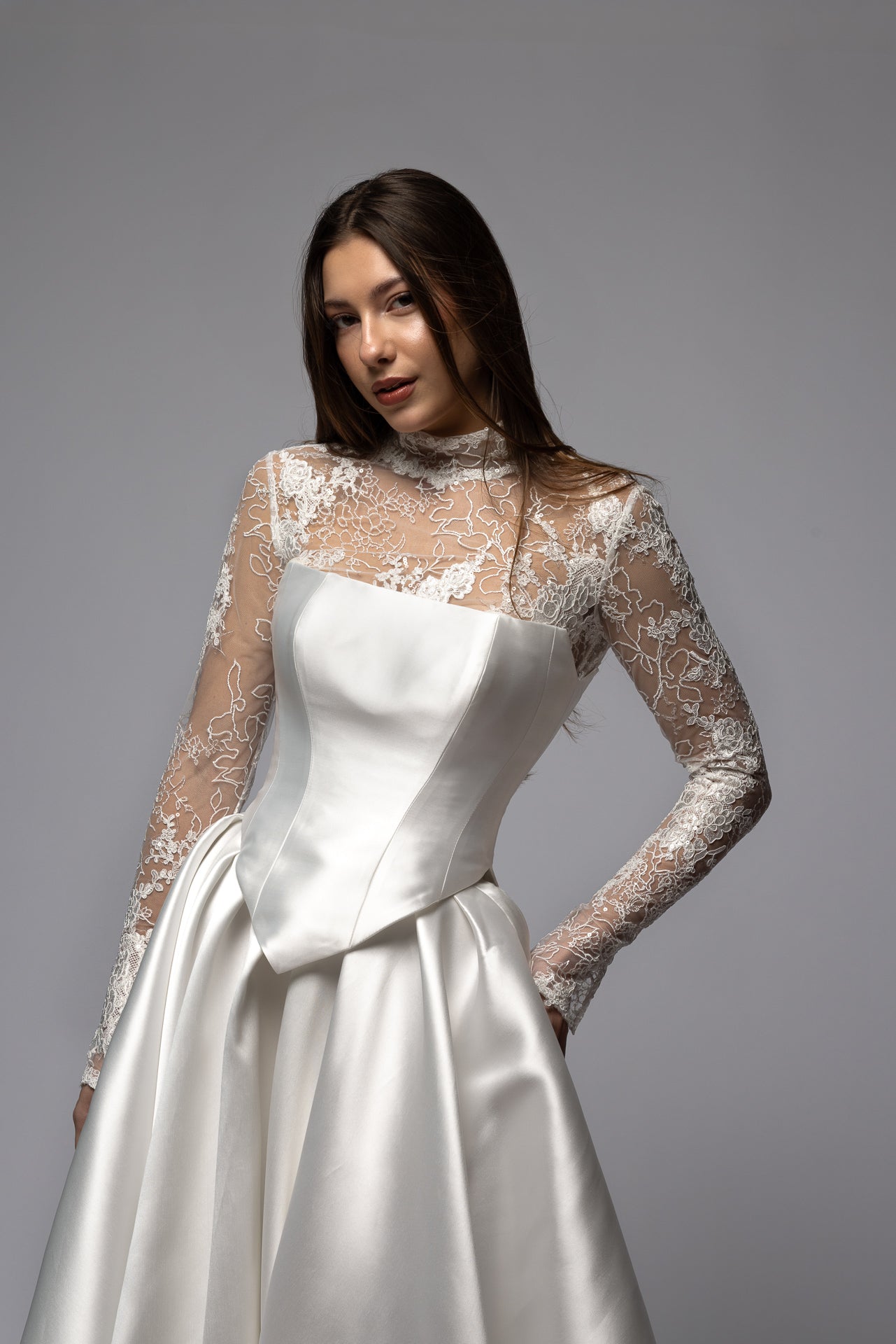 At Dioma, every gown is meticulously handcrafted with premium materials and attention to detail. Our designs combine timeless sophistication with modern elegance, ensuring you feel confident and beautiful on your special day. Each dress tells a unique story through exquisite craftsmanship and personalized touches.